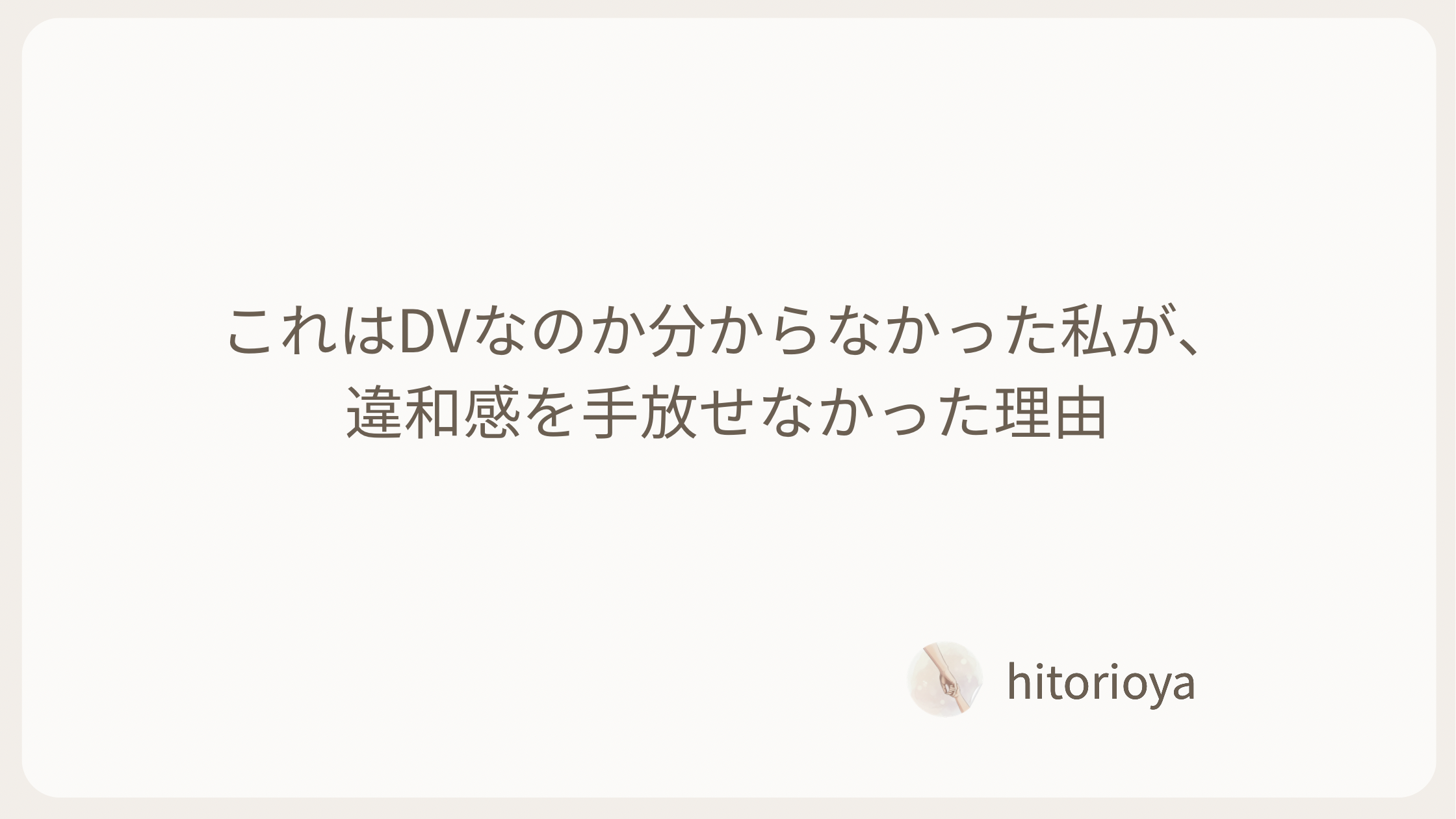 「これはDVなのか?」と判断できなかった決定的な理由